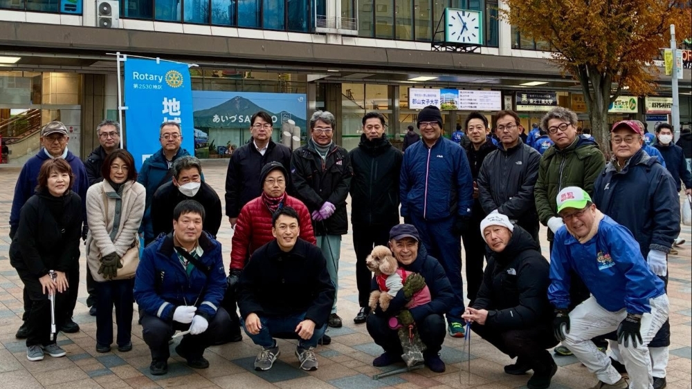 今日の例会は早朝例会でした。朝6時前から駅前の清掃活動を行いました。この清掃は「郡山清掃に学ぶ会」さんの活動に参加させていただいているものです。 全体の参加人数は合計90名となり、今年は比較的暖かい朝だったため足取りも軽く、西RCの参加人数も例年より多く集まりました。
